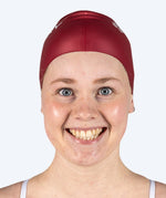 Feedbacken har genom alla år varit, att den särskilda passformen och det flexibla suede-silikonmaterialet gör att man nästan glömmer att man har badmössan på sig. Det är i stort sett det viktigaste för en badmössa. Badmössan är gjord så att den optimalt sett kommer att sluta i sidan en bit över öronöppningen, så att du fortfarande kan höra omkring dig och därmed undvika att det känns trångt att simma med.